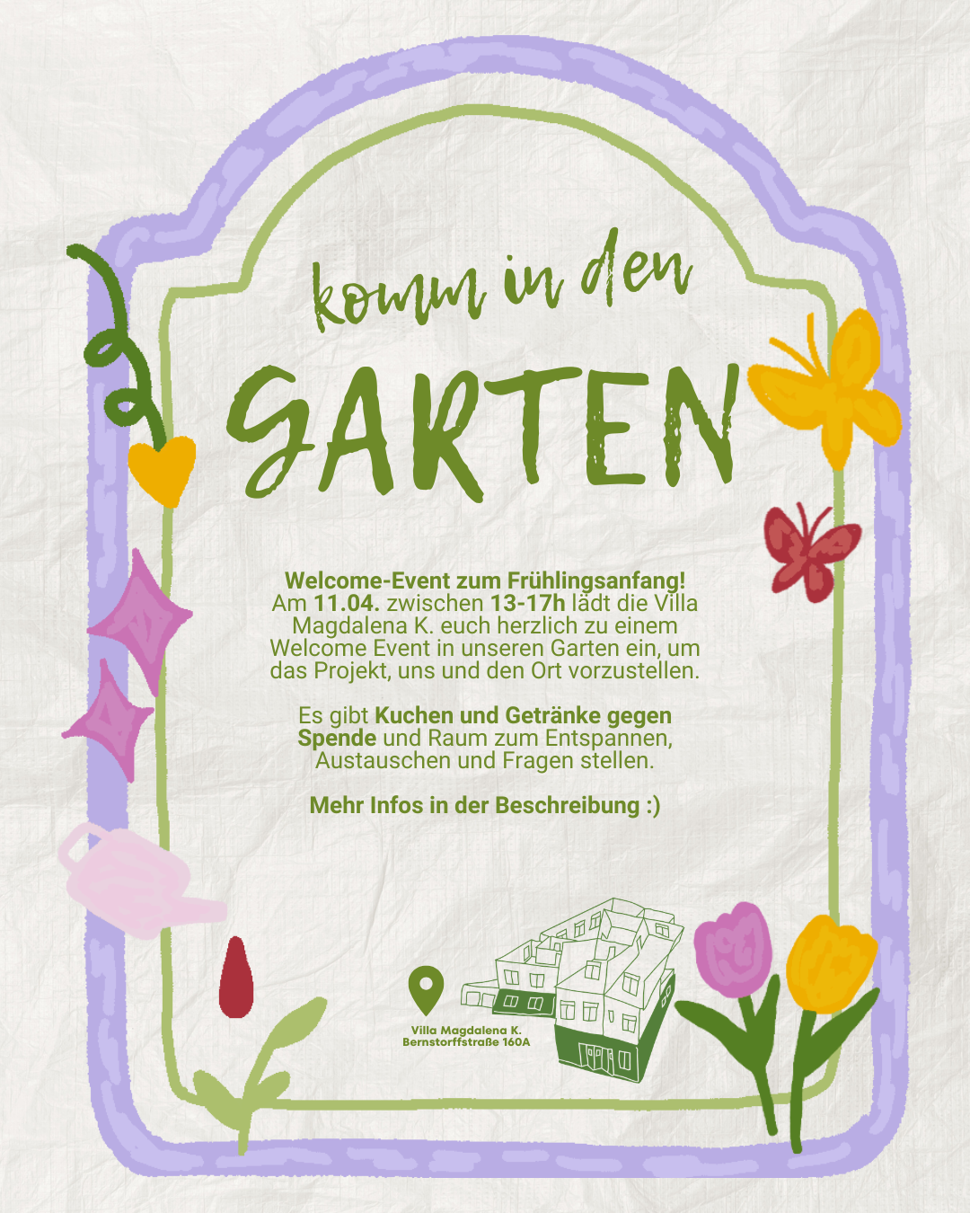Worum geht es? Gartenflächen sind in der Stadt selten – und noch seltener werden sie wirklich kollektiv genutzt. Wir wollen unseren Garten öffnen als Ort für gemeinsames Gärtnern, Austausch & solidarisches Miteinander. Wir sind ein queerfeministisches, selbstverwaltetes Wohn- und Werkstattprojekt und suchen FLINTA*, die Lust haben, mit uns diesen Raum zu gestalten. Der Garten darf wachsen und sich verändern. Er soll ein Ort des sich Ausprobierens sein und ein kleiner Rückzugsort werden - mitten in der Stadt.
